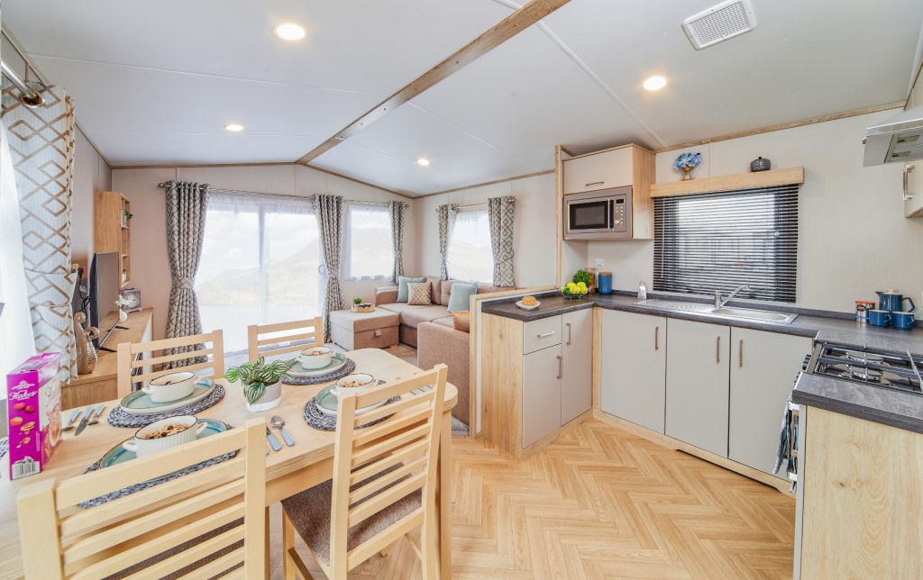 The Bayview features a bright and welcoming interior designed for practicality and comfort, ideal for relaxing breaks.