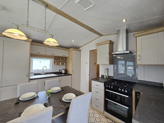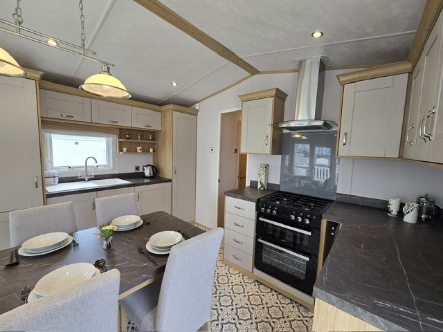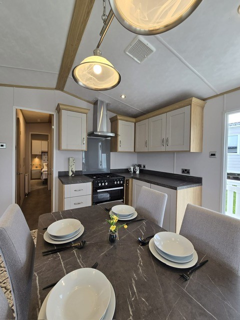 Stepping outside, the private decking area is a real highlight, offering the perfect spot for outdoor dining, morning coffee, or simply unwinding and taking in the tranquil surroundings of the park.