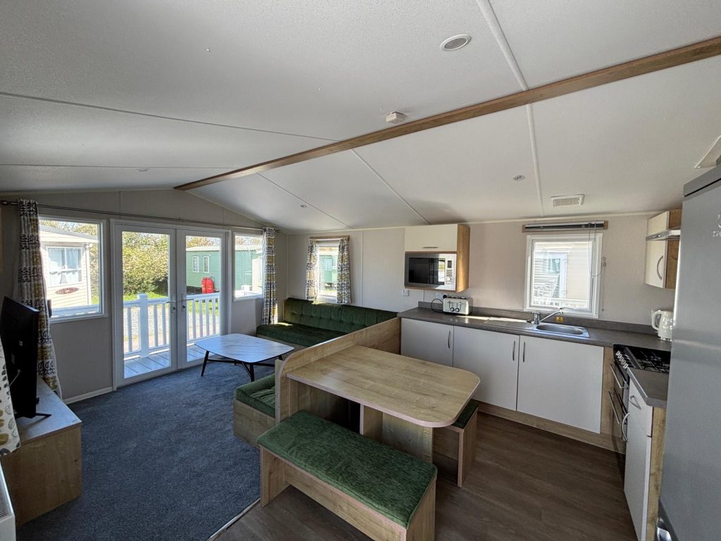 This static caravan features three cozy bedrooms, making it perfect for family getaways or groups of friends.