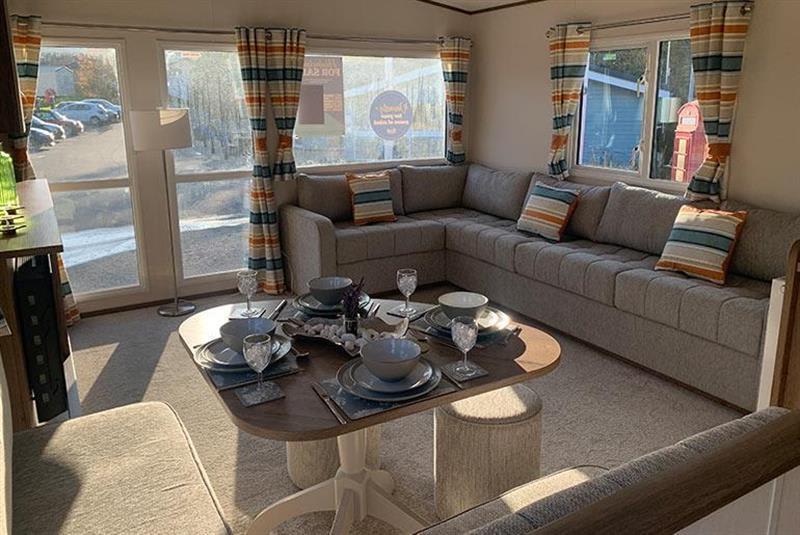 This stylishly designed lodge offers a blend of elegance and practicality, with ample storage and the option to add an external hot tub for extra luxury.